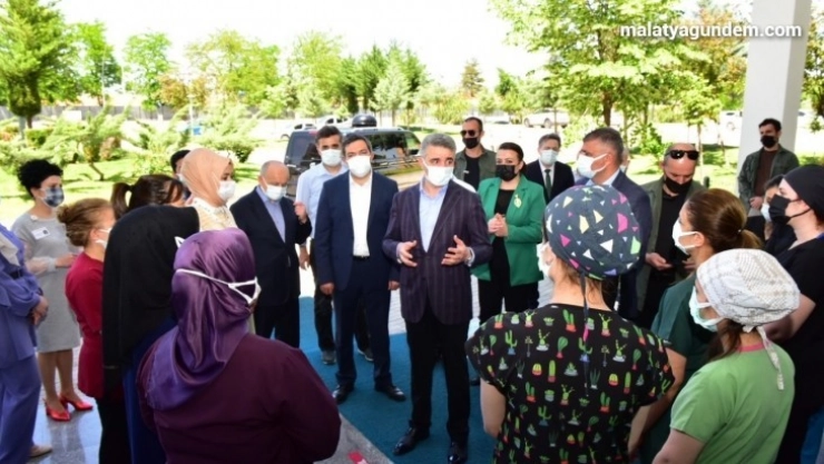 Malatya Eğitim ve Araştırma Hastanesi ile Yeşilyurt Hasan Çalık Devlet Hastanesindeki sağlık çalışanlarını ziyaret eden Vali Baruş, sağlık çalışanlarının bayramlarını aynı zamanda Dünya Hemşireler Günü’nü kutladı.