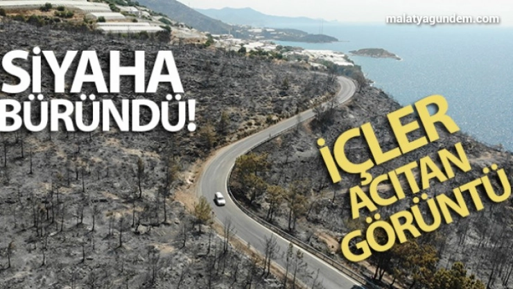 Yangının acı yüzü gün ağarınca ortaya çıktı. Yanan bölgeler drone ile havadan görüntülenirken, 3 gün önce yemyeşil alanlar siyaha büründü. İlçe merkezi ile sahil kesiminde bulunan ormanlık alanların büyük bir kısmı yanarken, bazı bölgelerden duman çıktığı görüldü.