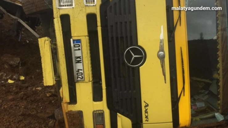 Malatya'nın Doğanşehir ilçesinde sürücüsünün kontrolünde çıkan tır şarampole devrildi. Kazada araç sürücüsü yaralandı.