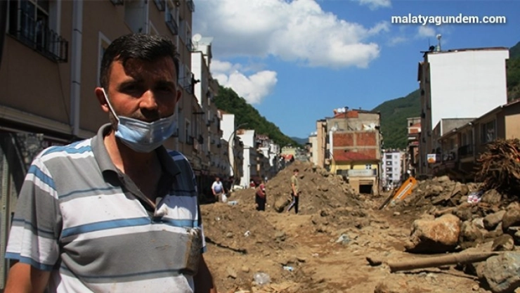 Dereli'de bulunan iş yerini yağış nedeniyle erken kapattığını evine gittiğini söyleyen Müslüm Çolak, “O gece ben dükkanımı sağanak yağmur nedeniyle erken kapattım. Eve çıktım evin balkonunda yağışı izlerken sel suları şehir içine doğru gelmeye başladı. Sonra bir kaç arkadaşımı arayarak uyarmak istedim. Baktım tek tek arama ile olmuyor ben de cep telefonundan herkesi uyarmak amacıyla canlı yayına başladım. Sel şiddetini arttırdı, yukarıdaki düğün salonunda düğün vardı. Düğün salonunun önünde park halinde bulunan araçlar baktım sel sularına kapılarak geldiğini gördüm. Bazı araçların içerisinde insanlarda vardı, araç içindeki insanlar görünce dehşete kapılarak çok korktum. Tek amacım insanları uyarmaktı, bunu da yaptığıma inanıyorum. O geceyi kelimelerle anlatamam” dedi.