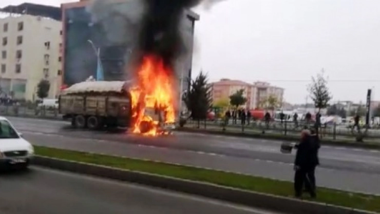 Yeşilyurt ilçesi Karakavak Mahallesi’nden geçen Malatya-Kayseri karayolunda ilerleyen bir kamyonda henüz bilinmeyen bir nedenden dolayı yangın çıktı. Sürücü durumu fark ederek hemen aracı durdurup aşağı indi. Alevler kısa sürede kamyonu sararken, çevredeki vatandaşlar da korku dolu gözlerle olan biteni izledi. Kısa sürede olay yerine gelen itfaiye ekipleri yanan araca müdahale ederken, kamyonun ön kısmı tamamen küle döndü.