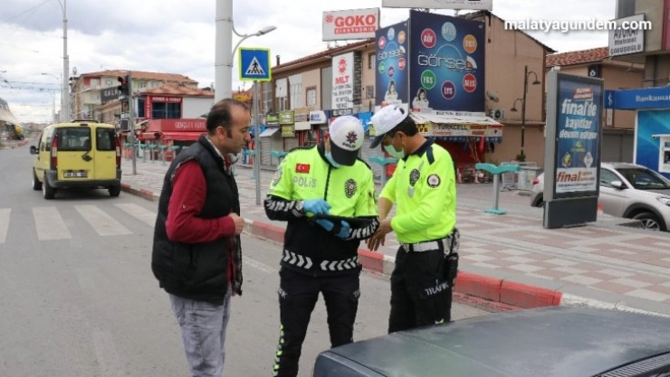 Malatya Çevreyolu’nda polis kontrol noktasında sürücülerden seyahat izin belgesi istenirken, belgesi bulunmayan sürücülere ceza kesildi.