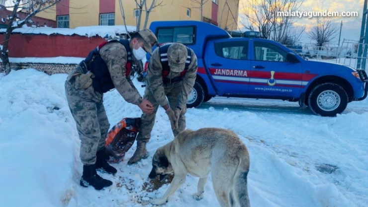 Malatya’nın Yazıhan İlçesi’nde, karda yiyecek bulmakta zorlanan sokak hayvanlarına güvenlik güçleri yiyecek bırakıyor.