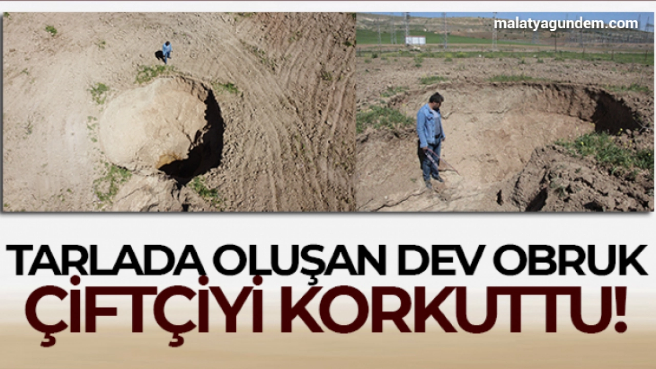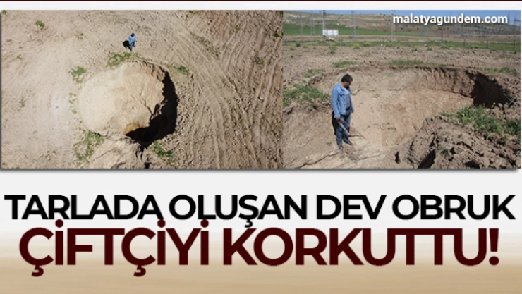 Tarlada oluşan dev obruk çiftçiyi korkuttu