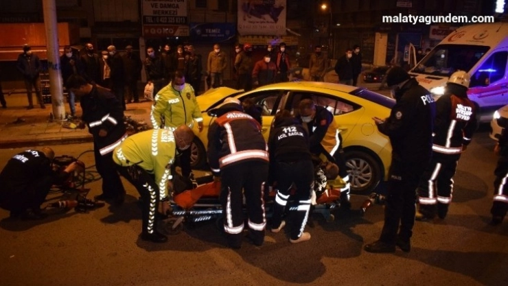 Edinilen bilgilere göre, Metin K. (37) idaresindeki Hyundai marka 44 T 0374 plakalı ticari taksi sürücüsünün direksiyon hakimiyetini kaybetmesi sonucu yol kenarındaki aydınlatma direğine çarptı. Çarpmanın şiddeti ile araç geri geri 3-4 metre savrulurken, sürücü araç içerisinde sıkıştı.