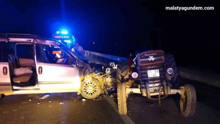 Kaza, 20.30 sularında Malatya-Sivas karayolu Dilek mevkiinde meydana geldi. Edinilen bilgilere göre, Sivas istikametine seyir halinde olan M.B. (61 ) idaresindeki 44 NB 253 plakalı hafif ticari araç önce emniyet şeridinden ters istikamette gelen M.B. (50) yönetimindeki 44 AF 014 plakalı traktöre, daha sonra da H.B.’nin (68) kullandığı 26 DS 124 plakalı traktöre çarptı. Kazada H.B., G.B., H.B., M.B., H.D. ile Z.G. yaralandı. İhbar üzerine olay yerine jandarma ve sağlık ekiplerinin sevk edildiği kazada, yaralılar kentteki çeşitli hastanelere kaldırılırken kazayla ilgili inceleme başlatıldı.
