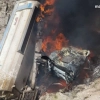 Uçuruma yuvarlanan kamyon alev aldı: 1 yaralı