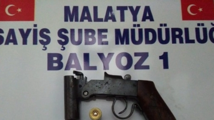 Alınan bilgiye göre, Malatya Emniyet Müdürlüğü Balyoz Ekipleri tarafından yapılan çalışmalarda, şüphe üzerine bir araç durduruldu. Araçta bulunan 1 şahıstan 9 gram uyuşturucu madde, başka bir araçta bulunan şahsın üzerinde 1 adet ruhsatsız tabanca ve bir adet sarjör, şarjöre basılı vaziyette 10 adet fişek, bir şahıstan ruhsatsız menşei belli olmayan tabanca ve tabancanın namlu kısmında atıma hazır vaziyette 1 adet 20 mm çapında fişek ele geçirildi.