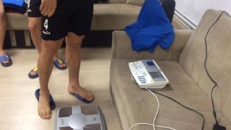 Sabah antrenmanı öncesi yapılan ölçümlerde futbolcuların kas ve yağ değerleri tespit edilerek, Antalya kampı öncesi teknik heyete verildi.