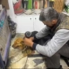 Yağmurda ıslanan sokak köpeğini fön makinesiyle kuruladı