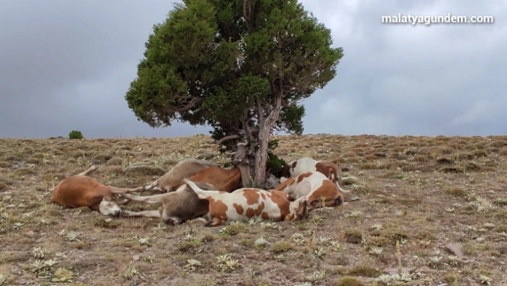 Malatya'nın Arguvan ilçesinde yıldırımın isabet ettiği ağacın altına toplanan 9 büyükbaş hayvan telef oldu.