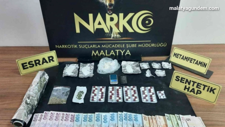 Malatya İl Emniyet Müdürlüğü ekiplerinin uyuşturucu ile mücadele çalışmaları aralıksız sürüyor. Uyuşturucu tacirlerine göz açtırmayan narkotik ekipleri düzenlenen iki ayrı operasyonda 59 adet uyuşturucu hap, 91,23 gram uyuşturucu madde ile uyuşturucu madde ticaretinden elde edildiği değerlendirilen 2 bin 925 TL ele geçirdi.